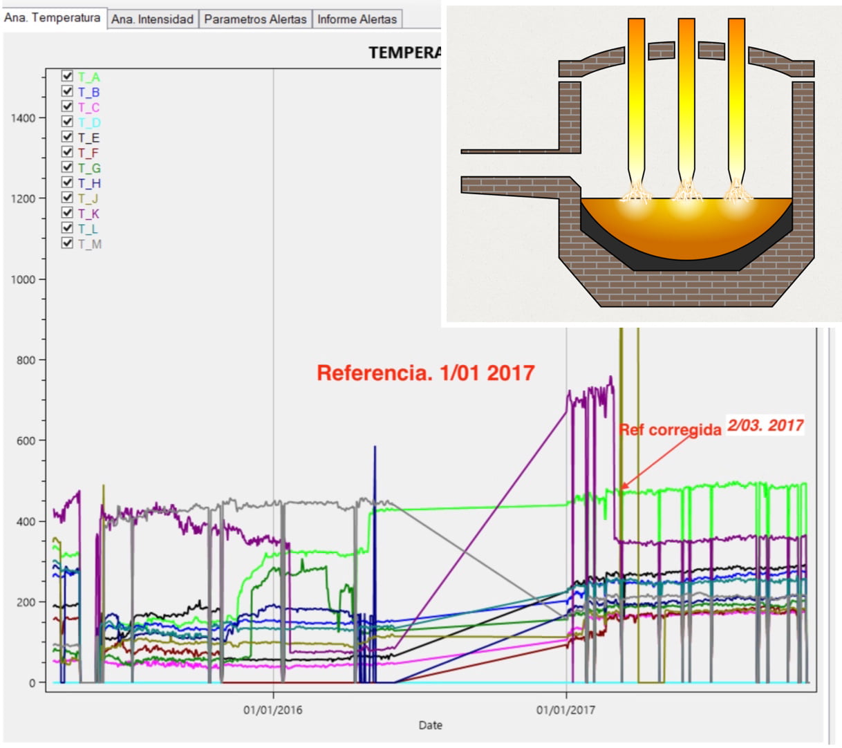 Las alarmas se han seleccionada a medida para cada horno teniendo en cuenta la asociación entre problemas del pasado y variaciones en el comportamiento de parámetros clave de los hornos y criterios estadísticos.